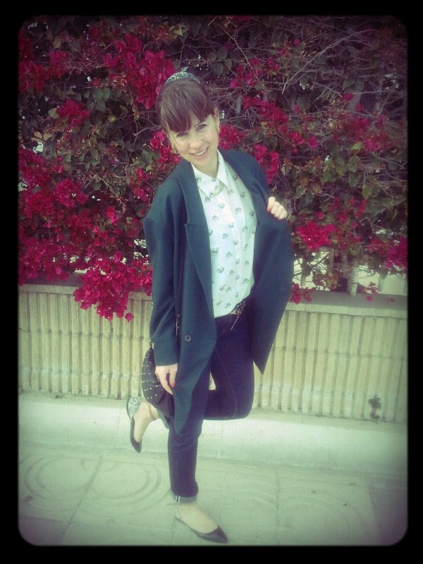 Holy Week is gone and, luckily, cold weather with it. These pics were taken on Maundy Thursday. You can´t imagine how cold was I that day even if I was wearing my oversized blazer which is perfect for this weather and also very comfi. I thought twice before buying it on sales because I found it difficult to match but I was completely wrong! I´ve posted already some pics combining it with a dress (click here) and it matches equally in a femmenine outfit or wearing a pair of jeans with this feline print shirt, yes, I Know, feline like me.