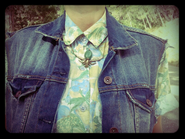Al fin jueves, mi día de descanso!! Sergio y yo nos hemos ido a los Montes a comernos unas migas (que falta nos hacían!!) y a disfrutar el uno del otro, que, últimamente, nuestra incompatibilidad horaria se ha hecho más dura y no vemos el momento de pasar algo de tiempo juntos. Eso sí, esos ratitos, aunque cortos, me dan la vida. Qué grande es mi novio!! Para la ocasión, nada nuevo (la economía ya no lo permite), como suelo hacer últimamente, intento echar mano del vintage, el reciclaje y la imaginación. Ya vendrán tiempos mejores...